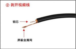將視頻線剝開,剪掉錫紙,并將銅芯上的絕緣殼剪掉,留出部分銅芯線,屏蔽層的金屬擰成另一條線;把Q9接頭的套筒擰下來,用螺絲松開接頭上的螺絲,將套筒套到視頻線上,視頻線同心軸插到接頭的同心孔,螺絲擰緊,并且將金屬網絲穿過鐵片固定到接頭鐵片上,將鐵片包在視頻線上用鉗子夾緊,擰上套筒就完成接頭安裝了,如下圖: